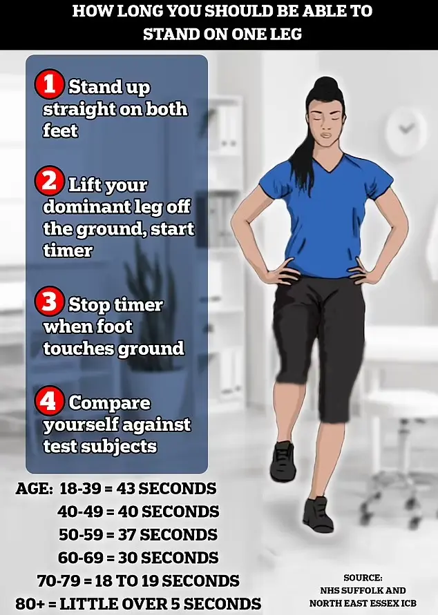 مطالعهای در سال ۲۰۲۲ نشان داد ناتوانی در ایستادن روی یک پا به مدت ۱۰ ثانیه در میانسالی و سنین بالاتر، با افزایش دو برابری خطر مرگ به هر دلیلی در ۱۰ سال آینده مرتبط است.