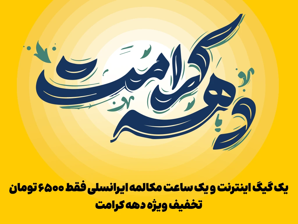 مشترکان ایرانسل می‌توانند همزمان با دهه کرامت، بسته ترکیبی شامل یک گیگابایت اینترنت و ۶۰ دقیقه مکالمه ایرانسلی را با قیمت ۶۵۰۰ تومان خریداری کنند. این بسته پس از فعال‌سازی، ۱۰ روز اعتبار دارد و امکان خرید چندباره آن نیز فراهم است.