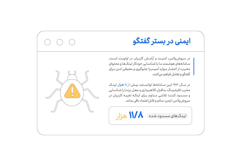 یکی از نکات بسیار قابل توجه در گزارش سال ۱۴۰۳ سروشپلاس، دفع ۱۱ هزار لینک مخرب است؛ این پلتفرم گزارش میکند که در سال گذشته سامانههای امنیتی سروشپلاس توانستهاند انواع لینکهای مخرب شامل فیشینگ، بدافزار، کلاهبرداری و جعل را شناسایی و خنثی کنند.