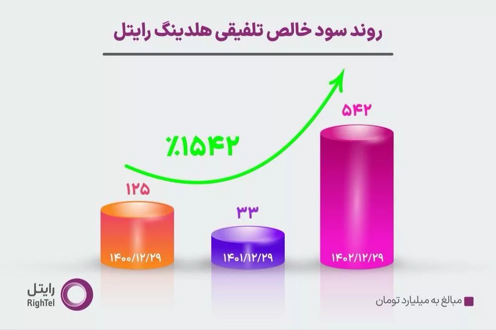 رشد ۱۵۴۲ درصدی سود تلفیقی رایتل در سال ۱۴۰۲