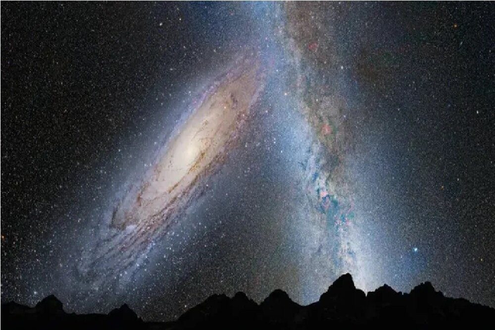 کهکشان آندرومدا یا «مسیه ۳۱» در فاصله ۲.۵ میلیون سال نوری از سیاره ما، نزدیکترین کهکشان بزرگ به کهکشان راه شیری است. اخترشناسان با مطالعه حرکت آندرومدا از طریق نشانههایی گویا از نوری که از آن منتشر میشود، برای اولین بار در سال ۱۹۱۲ پیشبینی کردند که این کهکشان در مسیر برخورد با کهکشان راه شیری خودمان قرار دارد و با سرعت ۱۱۰ کیلومتر در ثانیه در حال نزدیکی به آن است.