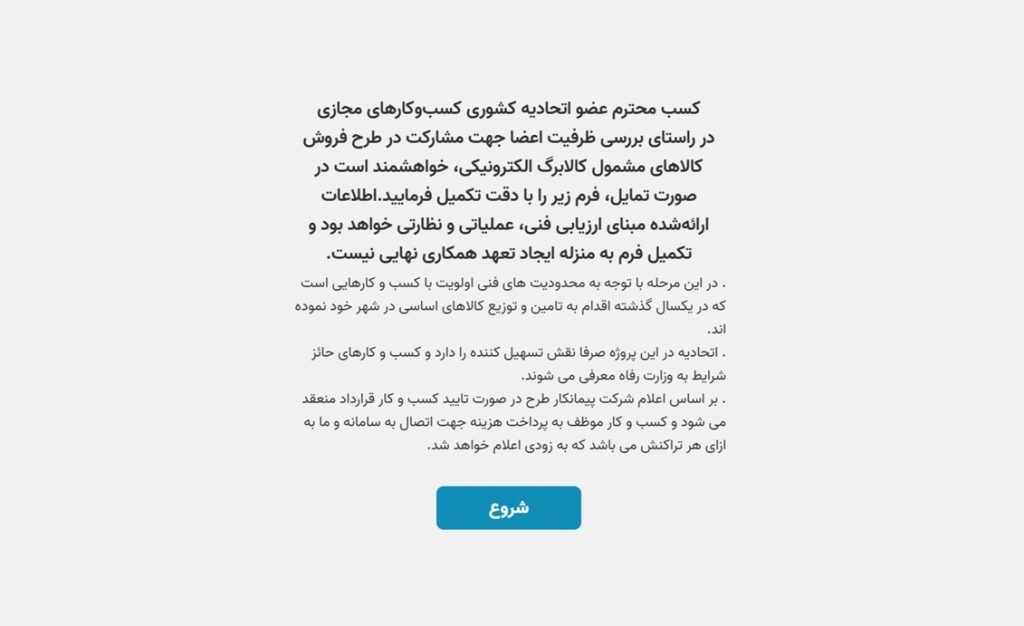 بر اساس این فراخوان، کسب‌وکارهای آنلاین عضو اتحادیه می‌توانند تا پنجم اسفندماه فرم اعلام آمادگی را تکمیل کنند. اطلاعات ثبت‌شده مبنای ارزیابی ظرفیت عملیاتی، لجستیکی و فنی هر کسب‌وکار خواهد بود. اتحادیه همچنین تأکید کرده که تکمیل فرم به معنای تعهد نهایی برای همکاری نیست.