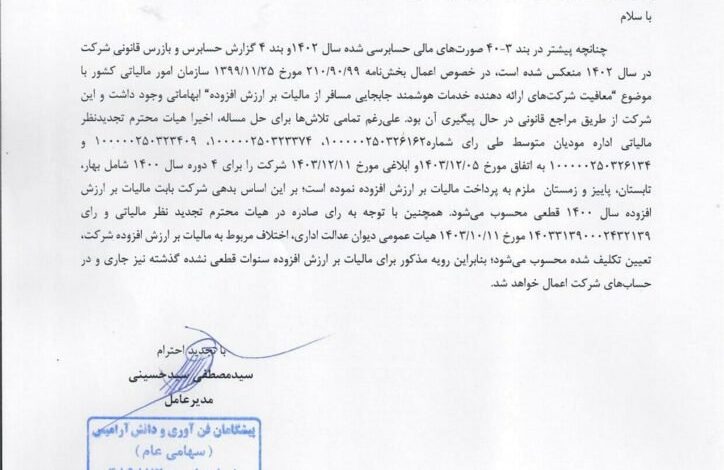 تپسی با انتشار اطلاعیهای در کدال اعلام کرد ملزم به پرداخت مالیات بر ارزش افزوده شده است. با رای هیئت…
