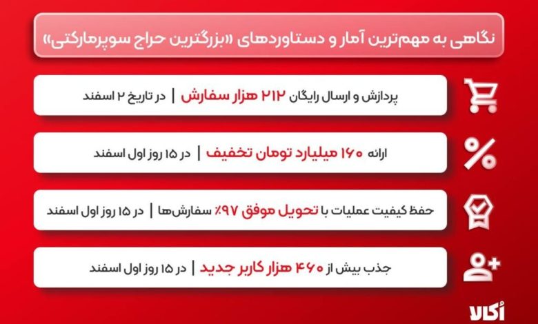 اُکالا در کمپین «بزرگترین حراج آنلاین سوپرمارکتی»، کالاهای سوپرمارکتی متنوعی با تخفیفهایی تا ۷۰ درصد و با ارسال رایگان را…