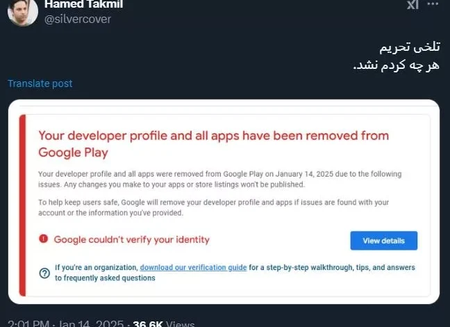 در روزهای اخیر یکی از توسعهدهندگان ایرانی اندروید با انتشار توئیتی از حذف حساب کاربریاش در گوگل پلی خبر داده…